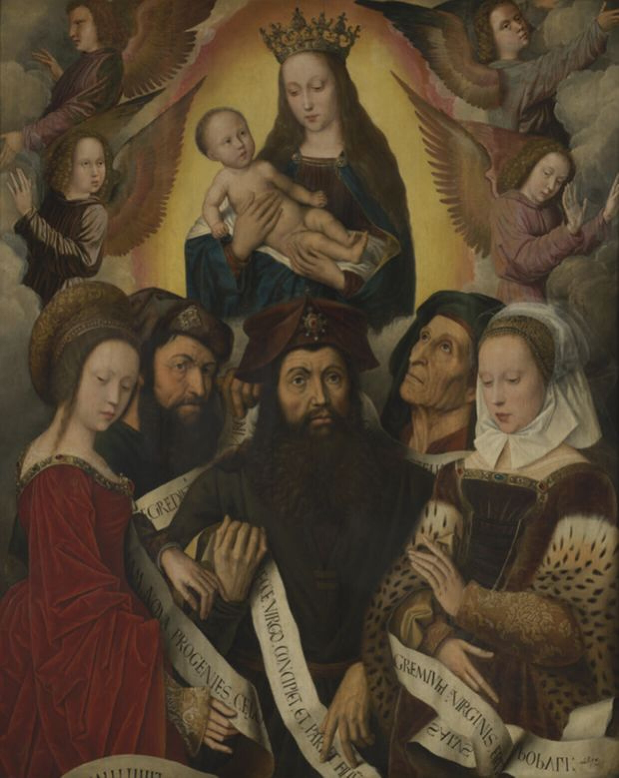 Intellectual and creative ownership of a design is a relatively modern concept. In the 16th century, the copying of great masters was the most normal thing in the world. In fact, it was actively encouraged among students – how else could one learn? But established artists, too, often took inspiration from the works of other masters, both their predecessors and contemporaries. Ambrosius Benson was no exception in this regard; the subjects and compositions of his paintings are frequently inspired by those of Gerard David, with whom he worked for a time in the studio. For Deipara Virgo, Benson may have drawn on Gerard David’s Virgo inter Virgines (ca. 1509), Jan Provoost’s The Glorification of the Virgin (1524), or most likely on a miniature in Simon Bening’s Flowers Book of Hours (1520-1525). This did not mean that a work was of lesser quality as a result; on the contrary, the ambition of artists was to imitate and surpass their predecessors. What do you think? Did Benson succeed in this case?