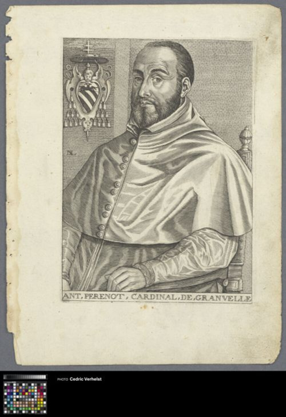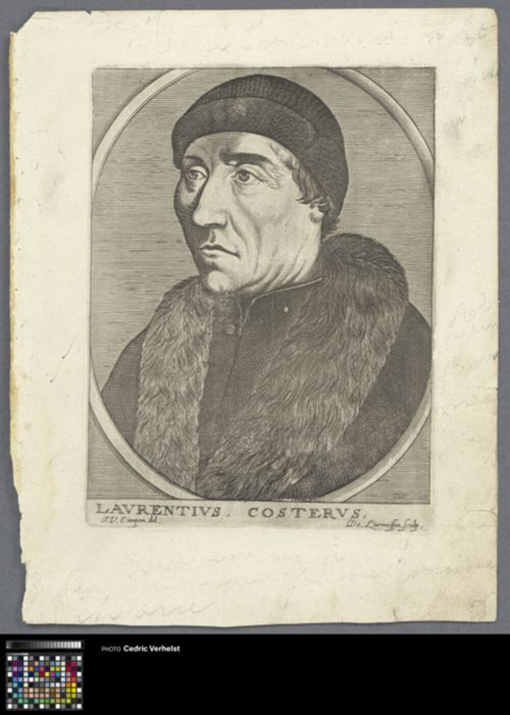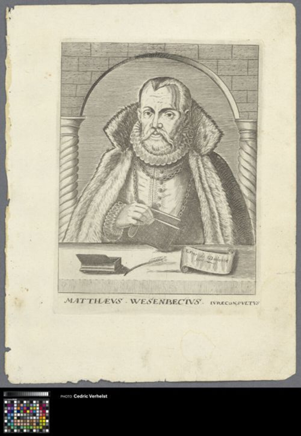 17de eeuwPortret van Baltasar Moretus I, drukker en hoofd van de drukkerij Platijn in halffiguur naar links. Boekillustratie uit: Bullart, Isaac. Académie des Sciences et Arts contenant les vies et éloges his. des hommes illustres qui ont excellé en ces professions depuis environ quatre siècles. Brussel: François Foppens, 1682. Aantekening in potlood op achterzijde.